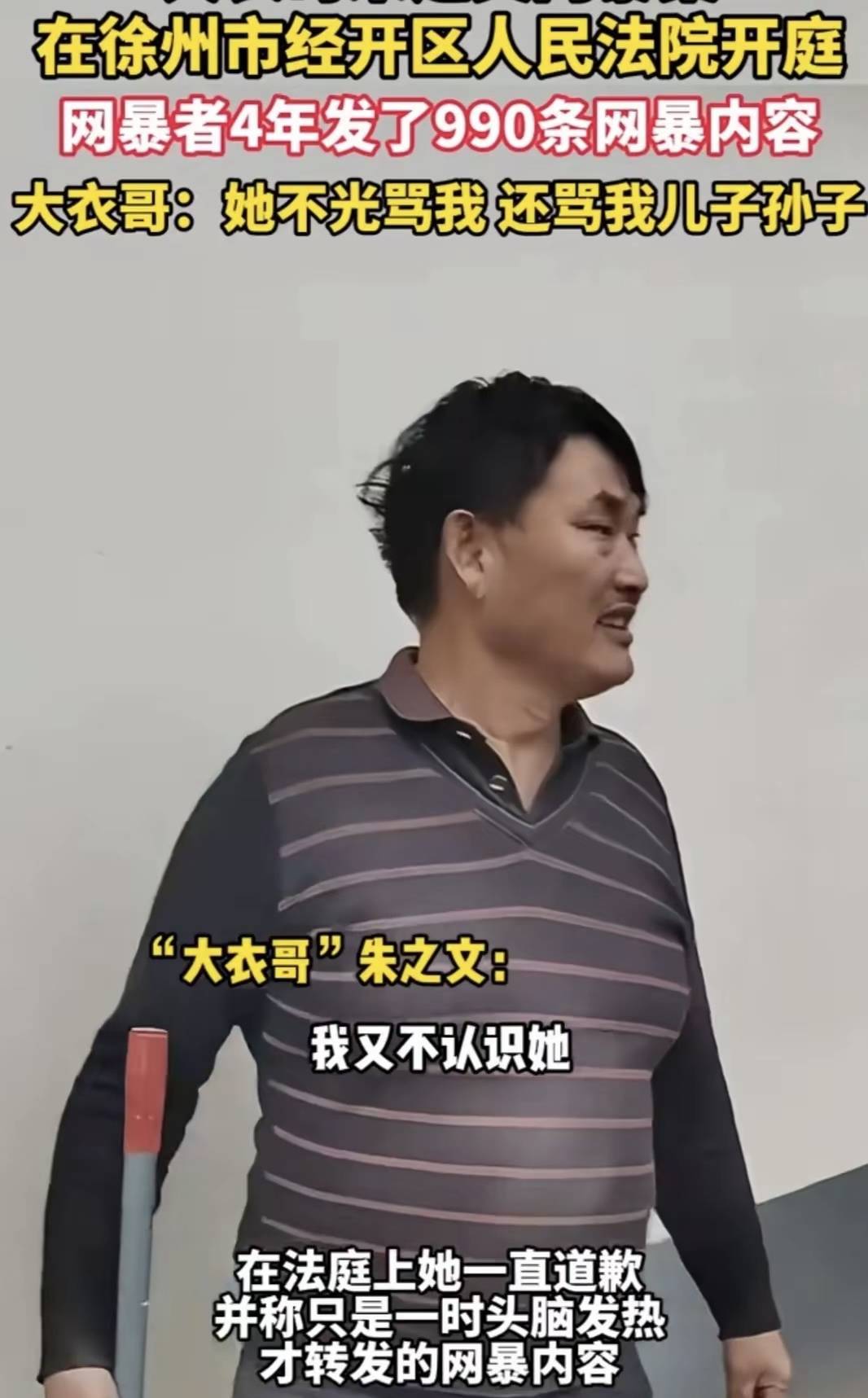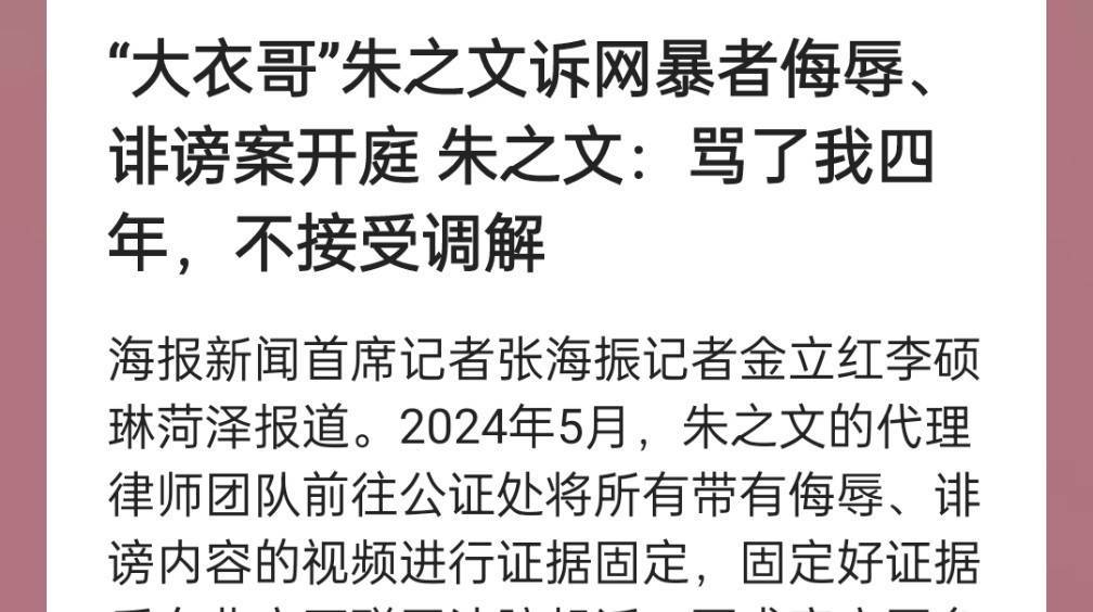 2025年11月1日,江苏徐州经济技术开发区人民法院的法槌落下,农民歌手朱之文(“大衣哥”)被网暴4年的案件终于迎来一审判决。被告人孙某某因犯侮辱罪、诽谤罪,两罪合并执行有期徒刑6个月。这个结果让朱之文松了口气,他在接受采访时说:“被骂了这么多年,连家人都跟着受牵连,这种事换谁都受不了。”据代理律师杨安明透露,孙某某从2020年开始,在短视频平台发布了近千条针对朱之文的辱骂视频,其中29条播放量超5000次,最高一条更是达到21万次。这些视频不仅捏造事实,还配上低俗音乐和恶意剪辑的画面,对朱之文的人格尊严造成了严重伤害。